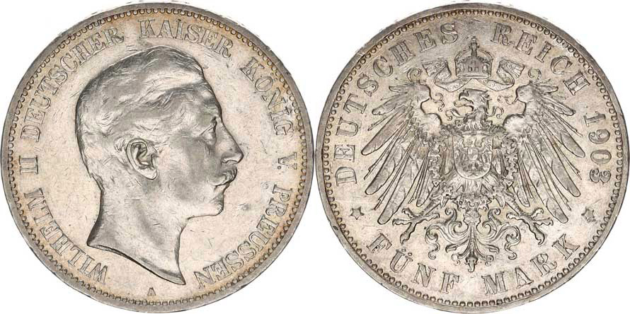 Prusko, Wilhelm II. (1888-1918), 5 Mark 1903 A KM 523