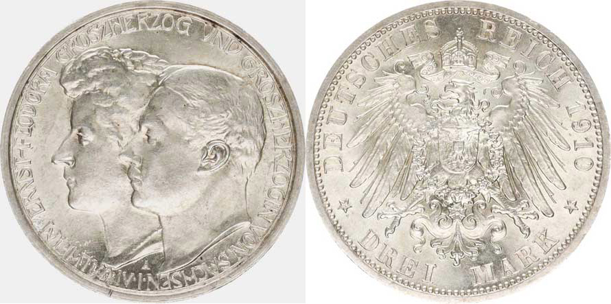 Sasko - Weimar - Eisenach, Wilhelm Ernst (1901-1918), 3 Mark 1910 A - Druhá svatba Y. 176 "R" /16,7