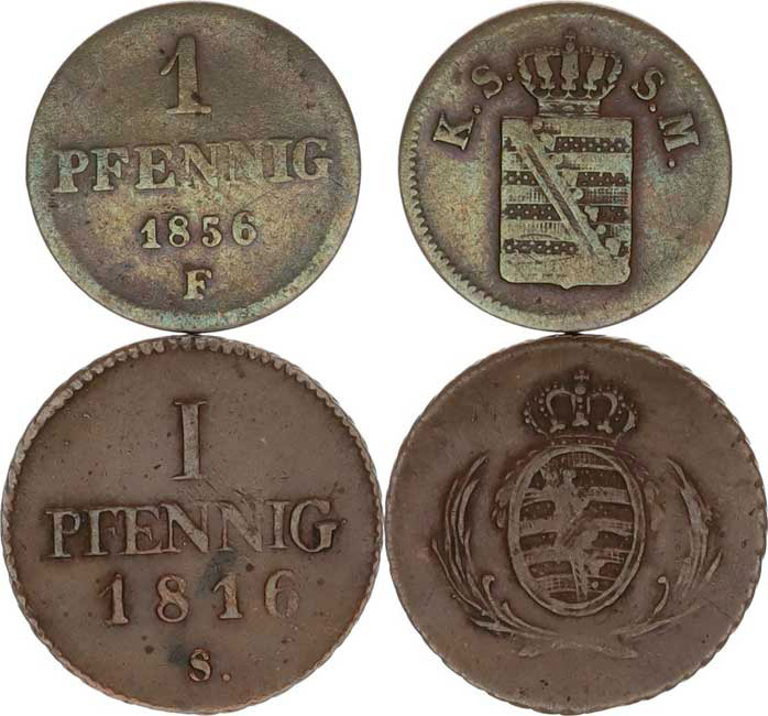1 Pfennig 1816 S KM 1080; Cr. 158b 1 Pfennig 1856 F KM 1184 2 ks