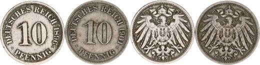 10 Pfennig 1896 J, 1901 D "R" 2 ks