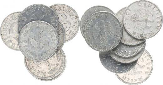 Německo - 3 říše, 1933-1945, 50 Rpf. 1940 A, 1941 A, D, 1942 A, B, 1943 A, B, D - vše Al