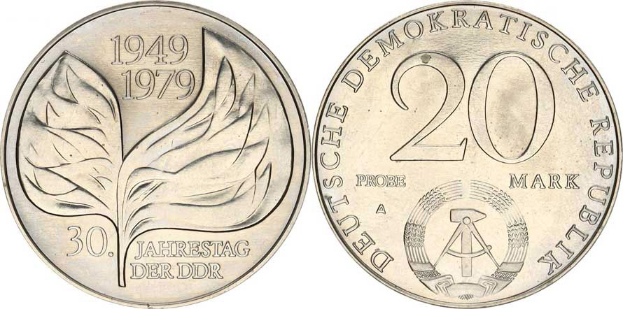 Německo - DDR (1949-1990), 20 M 1979 A - 30 let DDR "PROBE" KM -, "R"