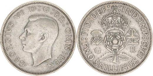 Anglie, George VI.(1936-1952), 2 Shilling 1943 KM 855