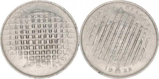 20 Francs 1932 KB - DES BELGES "oficiál. znehodnocený rastrem" (minc. Kremnica)