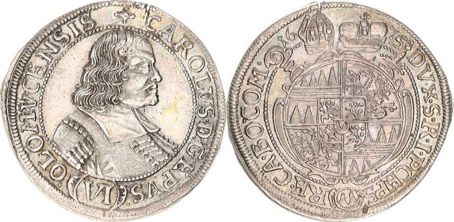 Olomouc, Karel II. Liechtenstein (1664-1695), VI kr. 1675 špice SV 344 B4/C - bez ozdoby na vrcholu