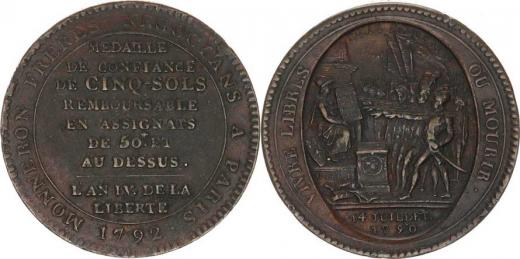 Francie, revoluce (1789-1796), 5 Sol, Monnéron 1792, přísaha vojáků / text a hodnota