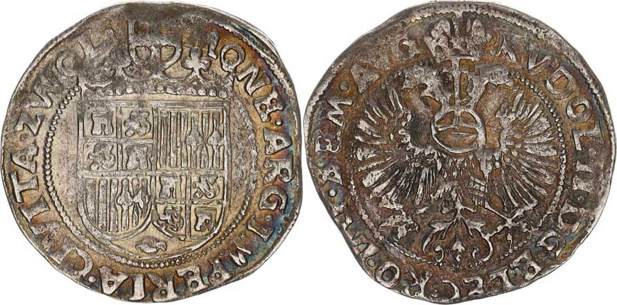 Nizozemí - Zwole, město, Escalin (Adlerschilling) b.l., - s tit. Rudolfa II. KM 15