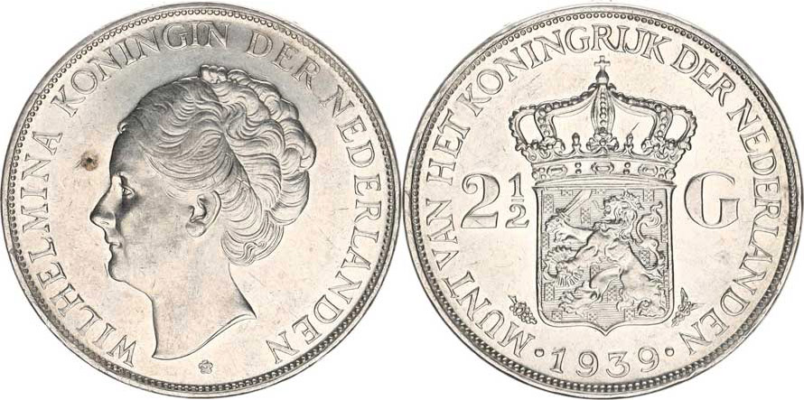 Nizozemí, Wilhelmina I.(1890-1948), 2 1/2 Gulden 1939 KM 165