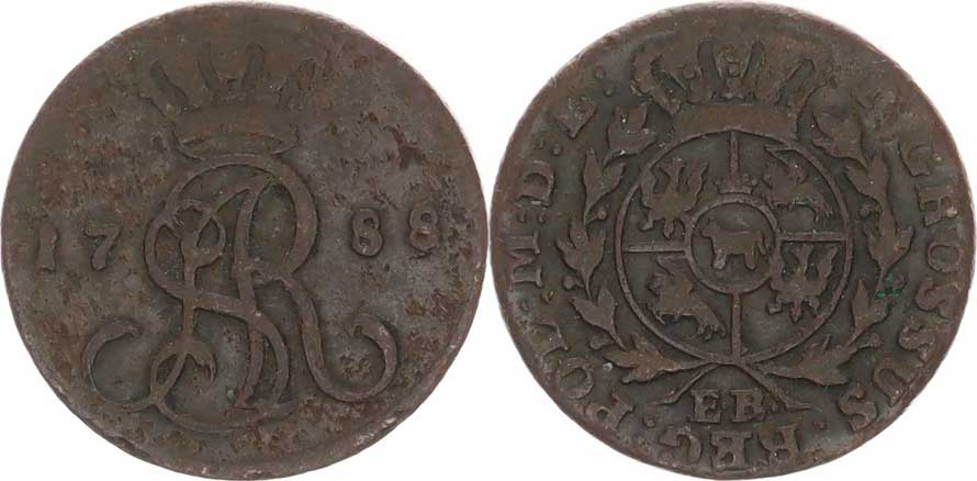 Polsko, Stanislav August (1764-1795), 1 Grosz 1788 EB Cu Kopicki 2219