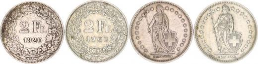 Švýcarsko, 2 Francs 1920, 1963 oba B 2 ks