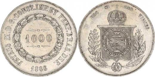 Brazilie, Pedro II. (1831-1889), 1000 Reis 1866 Ag 917 12,75 g KM 465