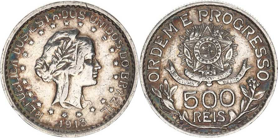 500 Reis 1913 A KM 512 Ag 900 5 g.