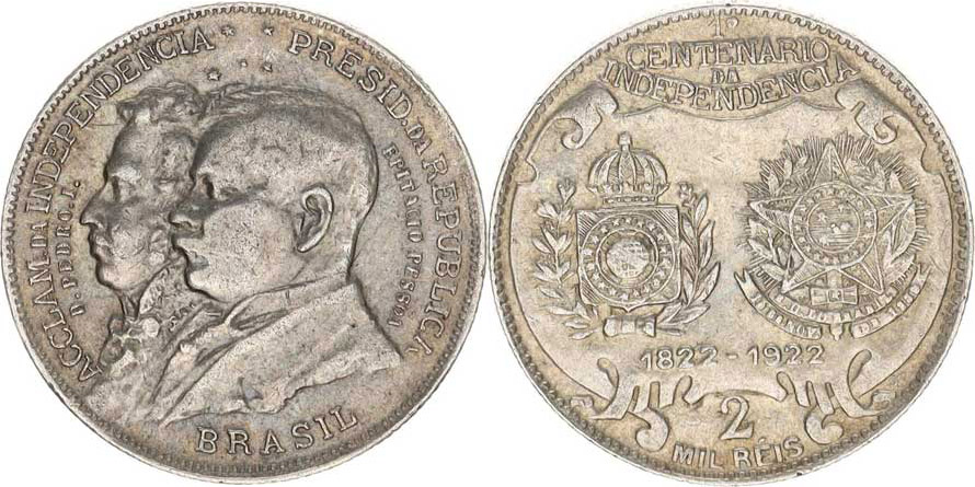 Brazilie, 2000 Reis b.l. (1922) - 100. výr. nezávislosti KM 523 A