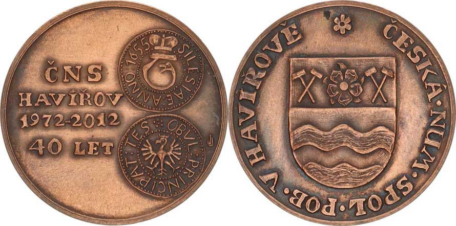 40 let ČNS Havířov 1972-2012, Těšínský obol a čtyřřádk. nápis / M ěstský znak a opis sign.: JJ (Jaroslav Jelínek) Cu 30,5 m m 12,45 g