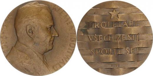 Klement Gottwald 1896-1953, portrét prezidenta zprava / Čtyřřádko vý nápis: PROLETÁŘI / VŠECH ZEMÍ / SPOJTE SE ! / 1971 sign.: JP (k 50. výr. založení KSČ) Novák 04.019 bronz 5 0 mm