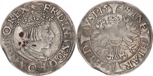 Ferdinand I. (1526-1564), 3 kr. 1549 Vídeň, Hartmann, mír. kraj. stř., dr. nedor.