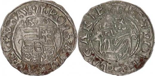 Maxmilian II. (1564-1576), Denár 1576 K-B Husz. 993, mí. exc.