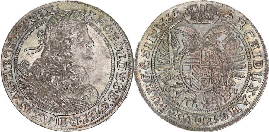 Leopold I. (1657-1705), XV kr. 1661 G-H, Vratislav-Hübner Hol. 61.1,1 "RR"