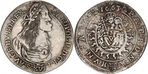 Leopold I. (1657-1705), XV kr. 1663 KB Hol.63.1,2 "R" +starý podlož. štíte