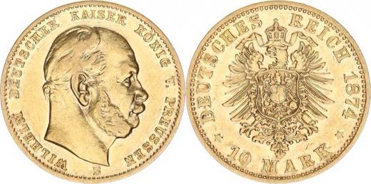 Prusko, Wilhelm I. (1861-1888), 10 Mark 1874 B KM 502 3,931 g
