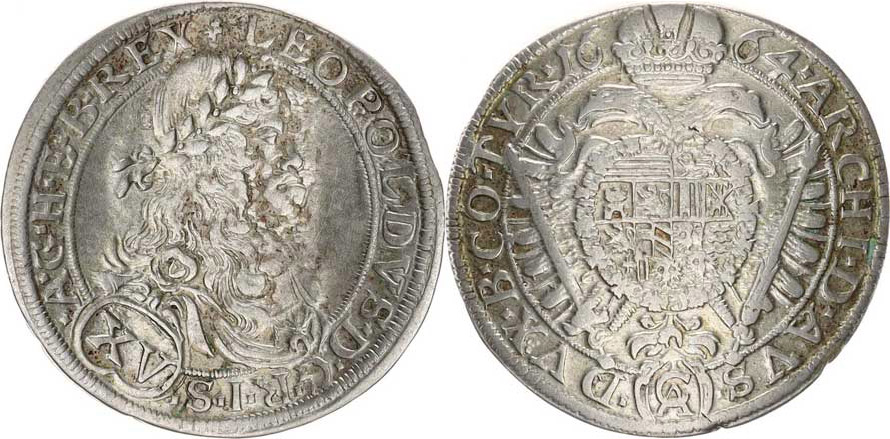 XV kr. 1664 CA, Vídeň-Cetto Hol.64.3,3 "pěkně válcovaná r ažba"