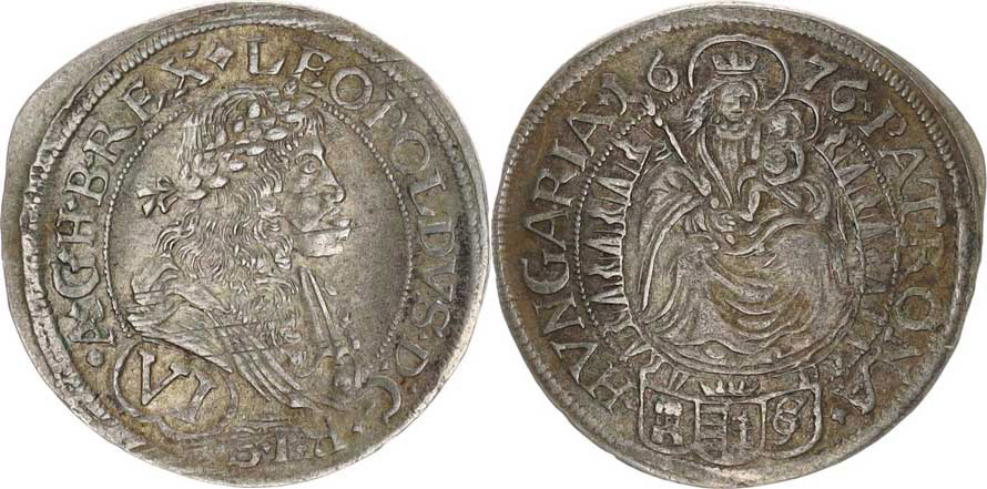 Leopold I. (1657-1705), VI kr. 1676 CG, Bratislava-Cetto jako Husz. 1459 var.: za REX