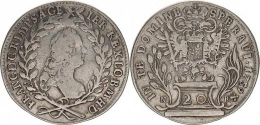 František Lotrinský (1745-1765), 20 kr. 1759 N-B, Nagybanya, mělčí ražba, tém.