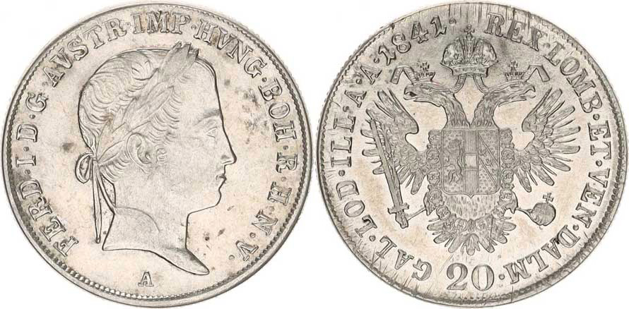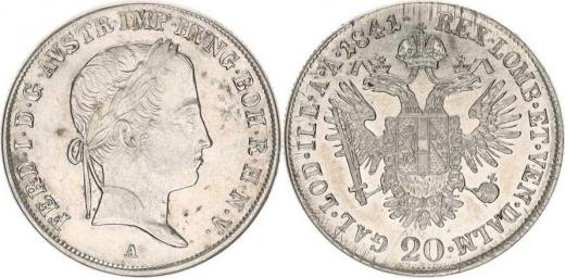 Ferdinand V. (1835-1848), 20 kr. 1841 A, nep. rys.