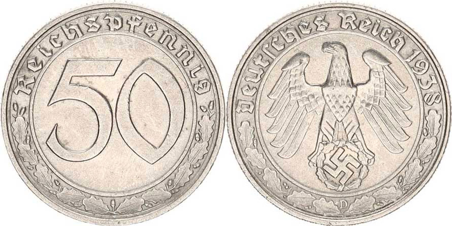 50 Rpf. 1938 D - Ni KM 95 "R"
