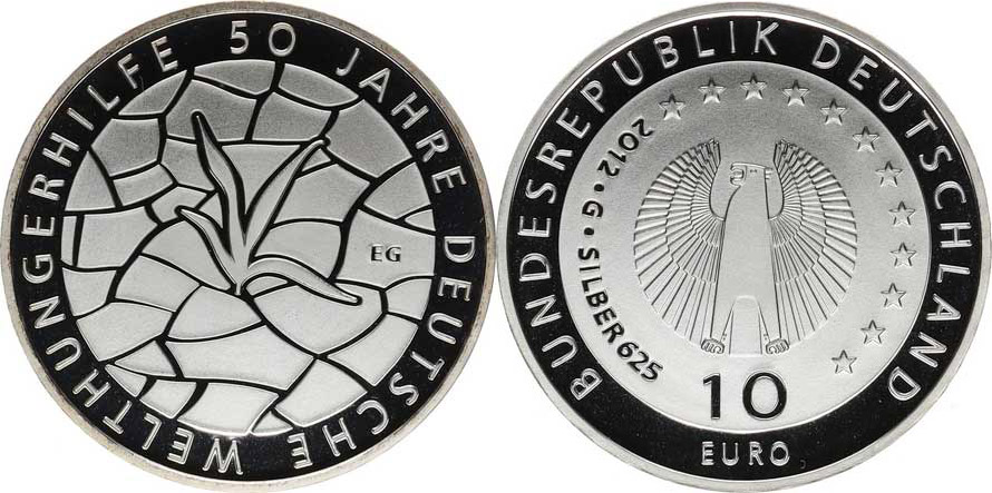 10 Euro 2012 G - Welthungerhilfe Ag 625 16 g KM 309a kapsle