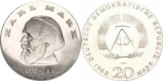 Německo - DDR (1949-1990), 20 M 1968 - K. Marx KM 21 kapsle