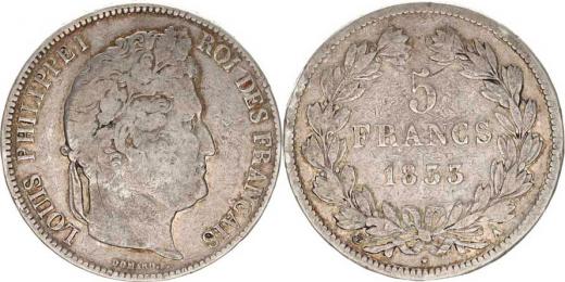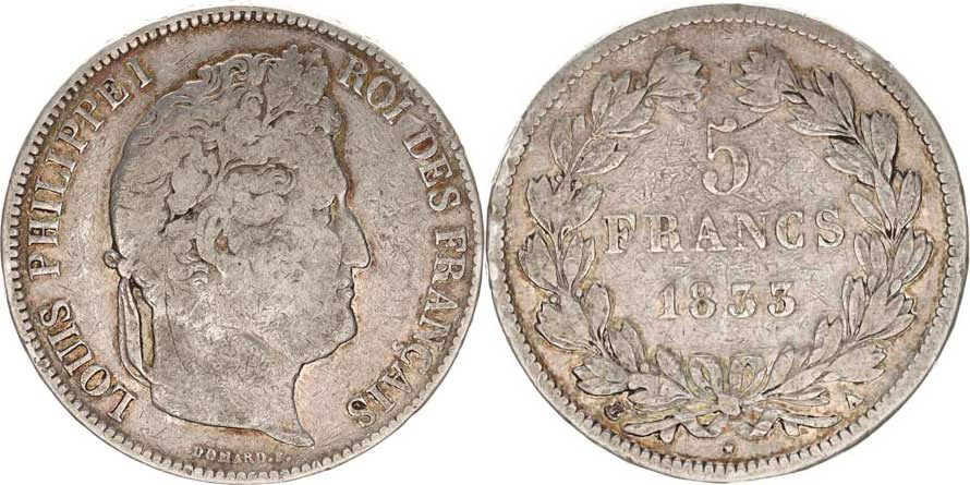 Francie, Louis Philippe (1830-1848), 5 Francs 1833 A KM 749,1 24,489g, škr.