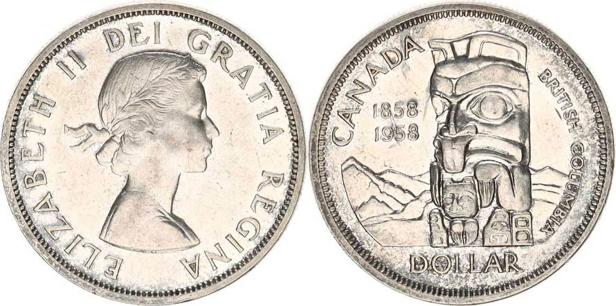 Kanada, 1 Dollar 1958 - Britská Kolumbie KM 55 Ag 800 23,24 g