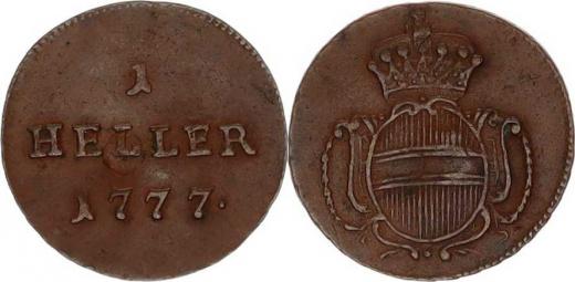 1 Heller 1777 b.zn., Vídeň 0,732 g, úhoz