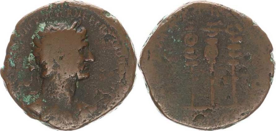 As, standarty mezi S C, nahoře legionářský orel opis skoro nečitelný RIC 588 11,032