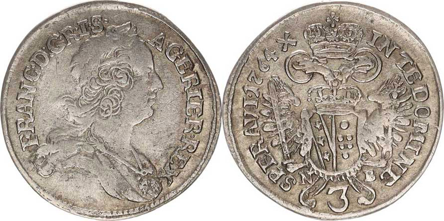 3 kr. 1764 N-B, Nagybanya Husz. 1818 "R"