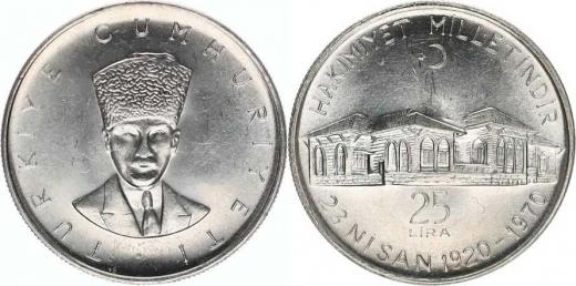 25 Lira 1970 - 50. výr. Národního shromáždění KM 897 Ag 830 14,6 g