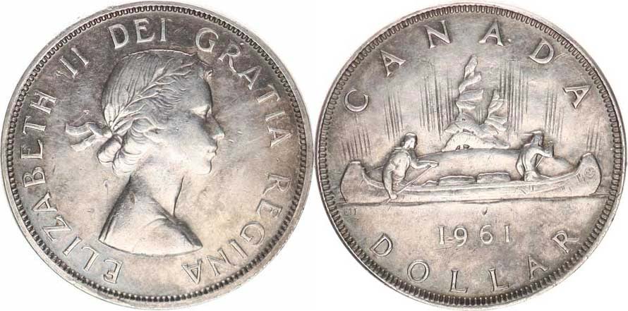 1 Dollar 1961 - kanoe KM 54 Ag 800 23,32 g