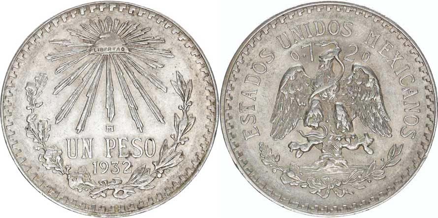 1 Peso 1932 M - var. otevřená "9" v dataci KM 455 Ag 720 16,66 g