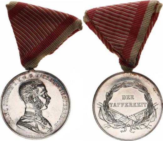Medaile "Za statečnost", typ 1866-1914 I. třída stříbrná sign.: LEISEK VM 1-5/IX/ Ag punc 40 mm
