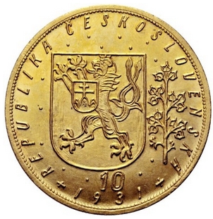 V aukci bude mj. dražen pražský tolar Karla VI. 1735, 5dukát 1933 a 10dukát 1931.