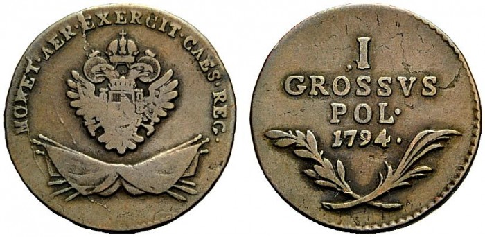 Materiál: Cu, Průměr: 18 mm, Hmotnost: 2 g (ročníky 1801-3, cca 1,4 g)